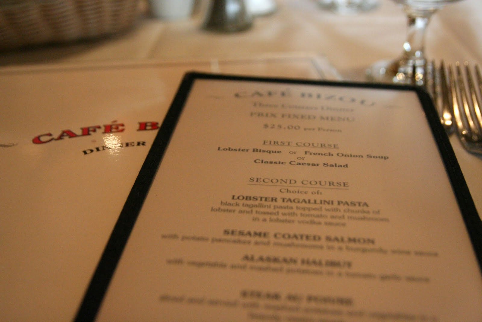 Although I was only a quick hop away from Andi, I didn't want to bother/lure her away from premium grad school studying. Thankfully, I had a few hungry friends who wanted to take advantage of Pasadena Restaurant Week with me. We decided to go to Café Bizou, which has been around for awhile and probably written about a hundred times. But since we can rarely afford luxuries, let alone an ~expensive~ meal, on our pithy budgets, $25 for a 3-course meal was right up our alley.